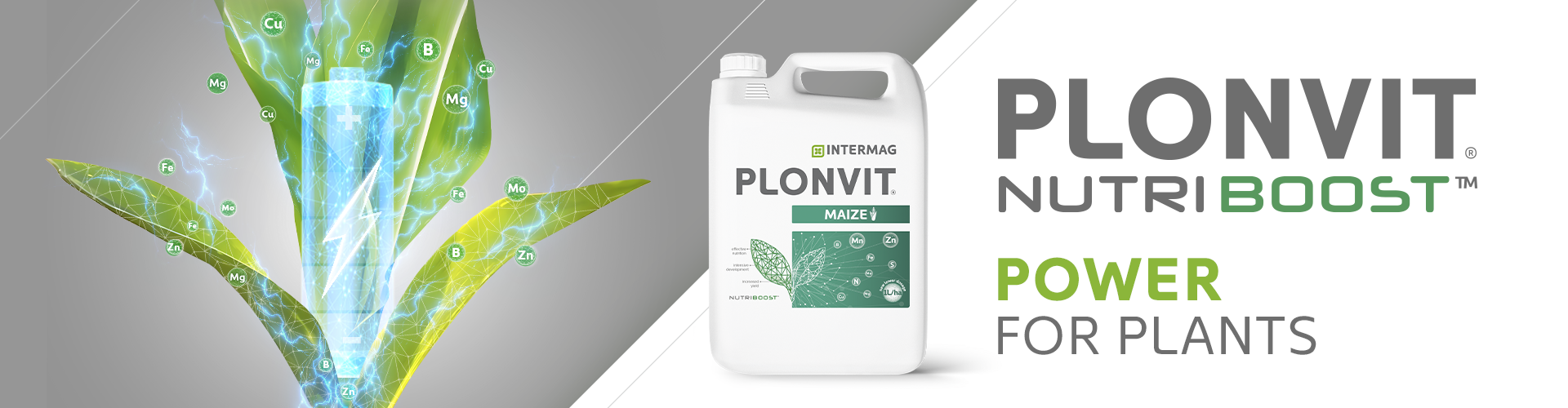 PLONVIT® MAÍZ contiene la tecnología NUTRIBOOST™, única y altamente efectiva. Es una combinación innovadora de micronutrientes con ácido glucónico orgánico, que se encuentra naturalmente en las plantas, lo que favorece la absorción eficiente de nutrientes. Además, el fertilizante está enriquecido con aditivos de formulación que mejoran la cobertura foliar, garantizan la estabilidad del producto y aumentan la eficiencia de la absorción de nutrientes.
