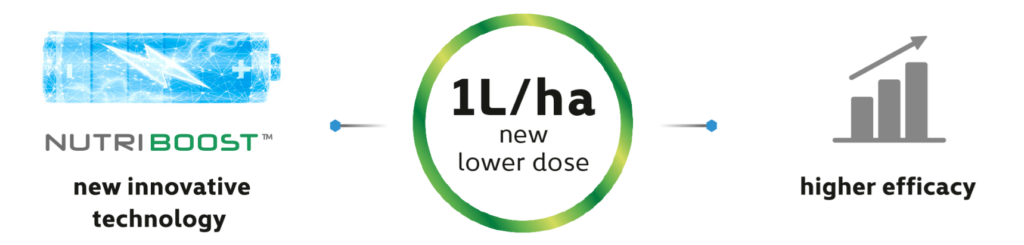 NUTRIBOOST™ apoya la generación de energía adicional e intensifica los procesos de formación de rendimiento, incluida la fotosíntesis, la producción de clorofila y la creación de enzimas y proteínas esenciales para el crecimiento de las plantas.